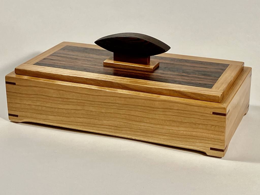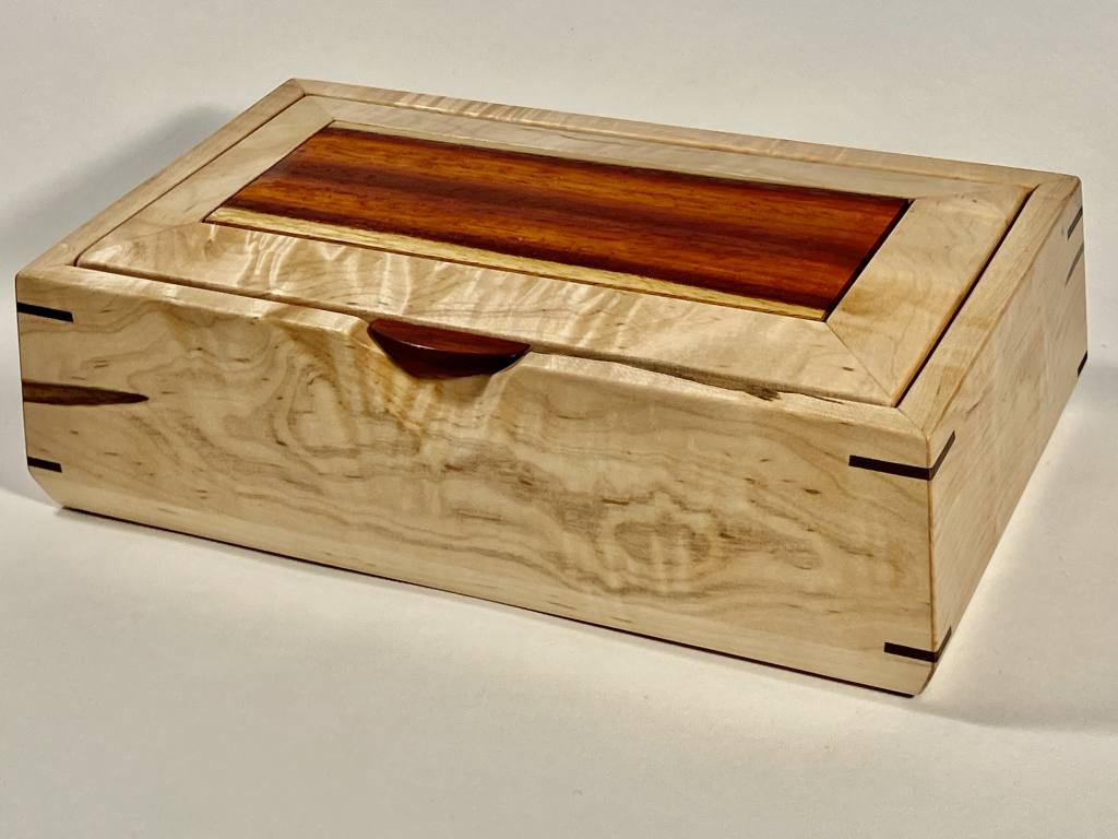 Box with inlay, removable tray, two divided levels, solid brass hinges